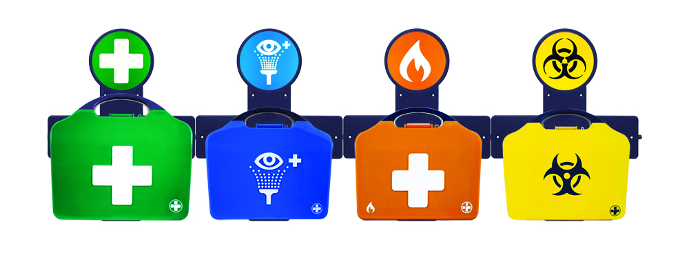 Aurapoint is a modular wall bracket system designed to complement the Aura3 and Titan range of first aid kits. All workplaces are unique, the first aid requirements are too. Choose from our sustainable first aid point range and create the workplace first aid system your risk assessment demands. (First Aid provision should always be based on the levels of risk associated with each individual). Visible: AURAPOINT uses text-free universal icon labels and high-impact circular header panels for instant identification of first aid kits anywhere in the world.