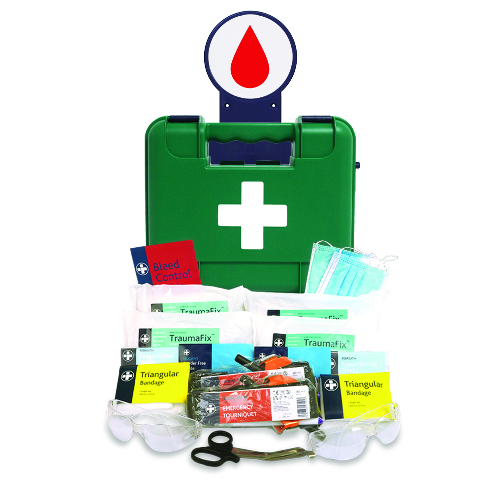 PAcT kits include equipment specially designed to treat major wounds and quickly stop blood loss. The contents were developed in response to national terrorist attacks (including the 2017 Manchester Arena attack) where multiple casualties suffered catastrophic injuries but insufficient equipment was available to stabilise their wounds. PAcT kits are designed for members of the public to access and use quickly and safely by members of the public before Emergency services arrive.Visible: AURAPOINT uses text-free universal icon labels and high-impact circular header panels for instant identification of first aid kits anywhere in the world.