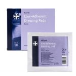 Sterile, low adherent dressing pads, designed to be applied to a wound from either side, thus preventing incorrect application. The dressing is low adherent with high absorbency, effectively drawing exudate away from the wound. For use on abrasions, lacerations and moderately exuding wounds. Soft, comfortable and conformable. Secure with tape or a conforming bandage.